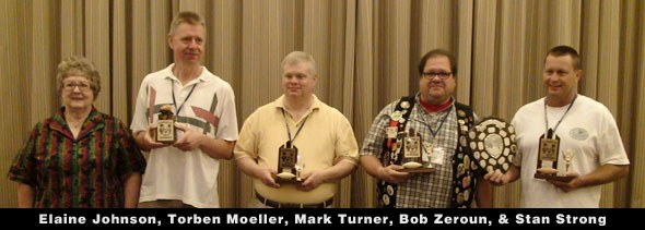 (Back row, L-R): William Hamill (Flying Deuces Tent, New Jersey), Roger Gillette (Block-Heads Tent, Minnesota), Kevin Mulligan (Flying Deuces Tent, New Jersey), Glenn Campbell (Blotto Tent, New Jersey), Rick Lindner (Perfect Day Tent, Ohio), Jimmy Wiley Jr. (Way Out West Tent, California), Kris Wiley (Way Out West Tent, California).