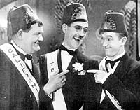 Sons of the DesertReleased December 29, 1933 (Feature). Also released as: Fraternally Yours The boys take an oath at their lodge, pledging that they will attend the annual convention in Chicago. Unfortunately, their wives won't let them go. So Ollie comes down with a phony illness, saying the only cure is a sea voyage. He insists that Stan accompany him. As they return from the convention, they find that the ship they were allegedly on his sunk and many passengers are missing. |